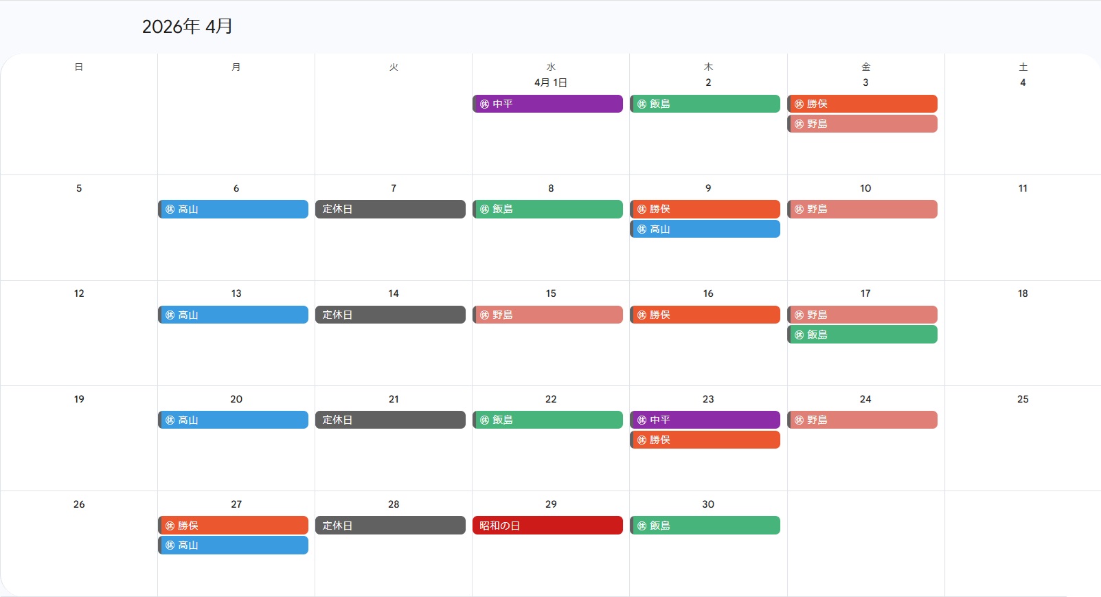 【04月のお休み】